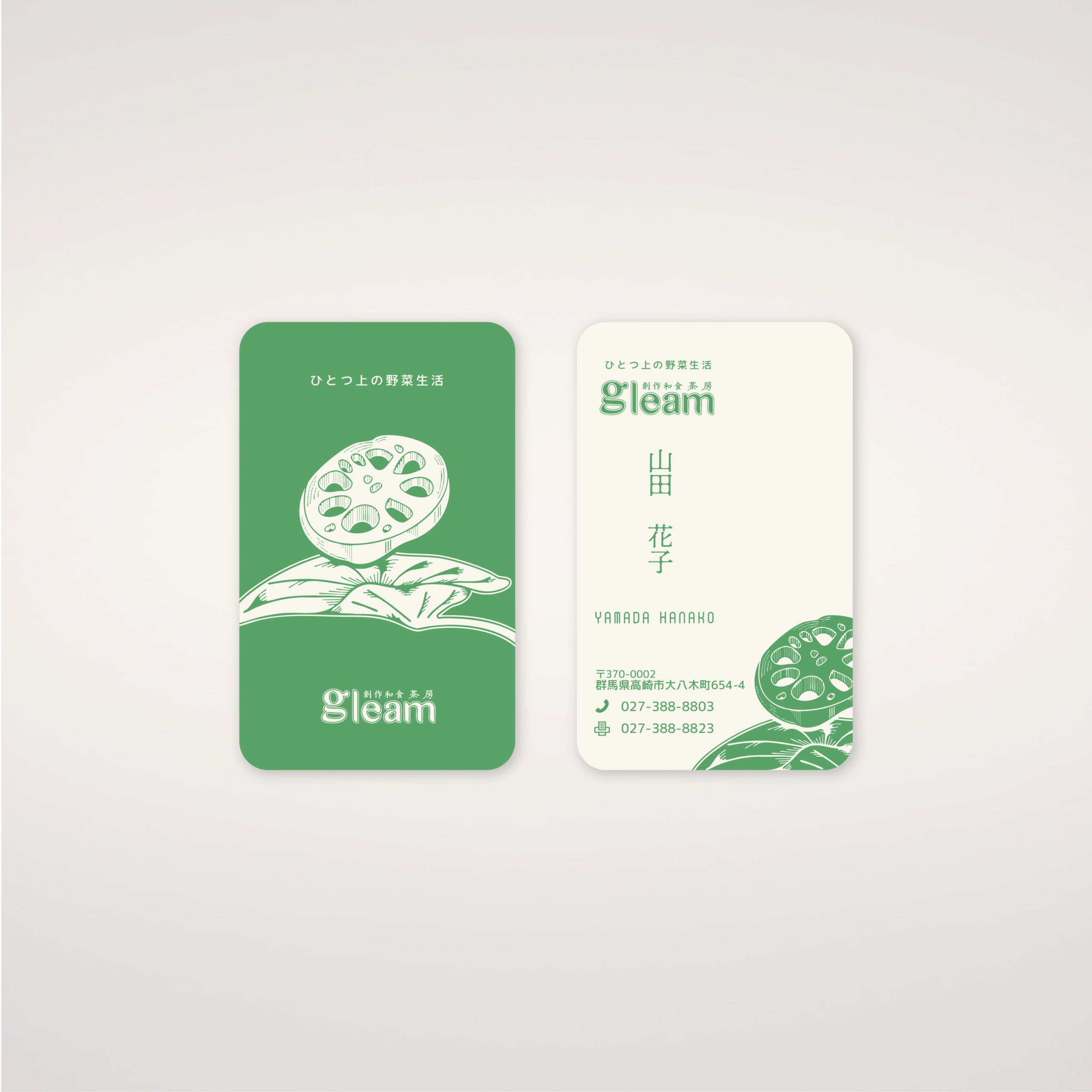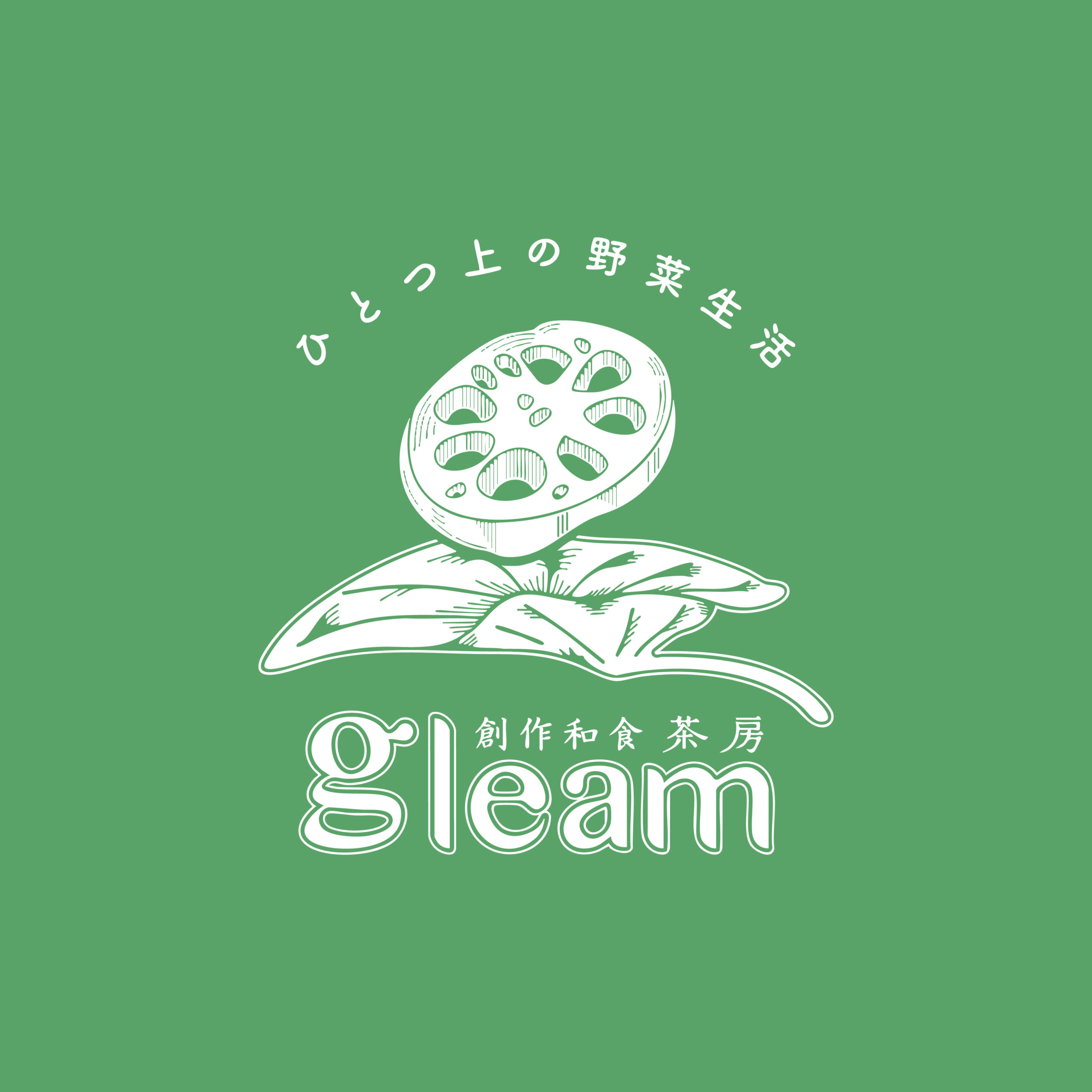 創作和食のお店 Client : 創作和食 茶房 gleam Field : ロゴ https://sabou-gleam.com 群馬県高崎市にある、野菜をメインとした創作和食を振る舞うお店です。野菜ブーケの第一人者でソムリエでもあるオーナーさんは全国各地にスクールも展開されています。飲食店をオープンするにあたり、ロゴマークをお作りさせていただきました。繁栄の念を込め、縁起の良い先を見通せる蓮根と葉をデザインに用いました。上下反対の配置は、「創作」を表しています。健康志向が高まる現代、背徳感なく満足できる食事は最高です。