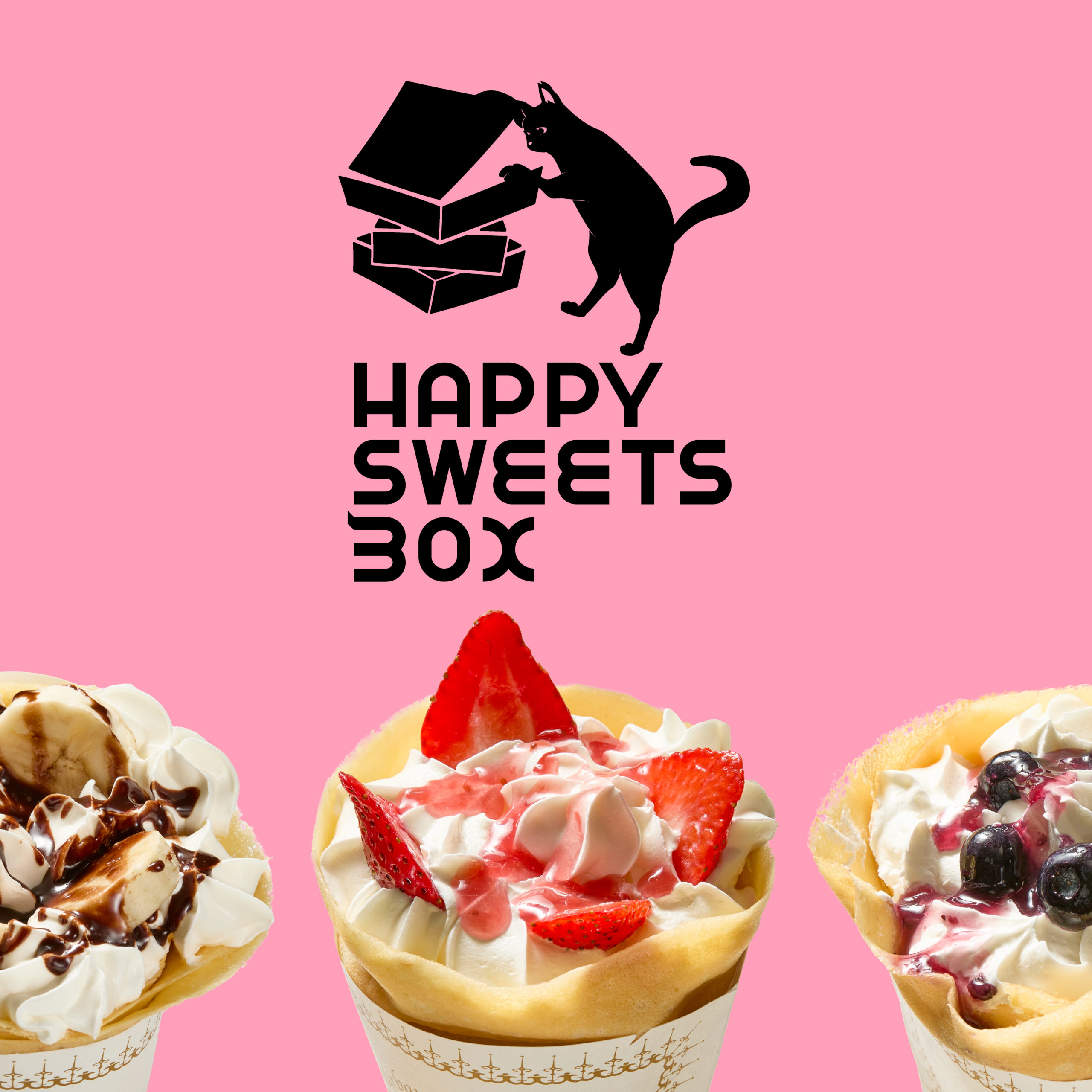 赤城山麓にあるクレープ屋さん vol.1 Client : HAPPY SWEETS BOX(新進) Field : ロゴ https://maebashi-akagi.jp/ 猫をモチーフとし、スウィーツが入っているであろうボックスを覗き込む可愛らしいデザインとしました。クレープにとどまらず、今後の展開も考え様々なスウィーツ販売で活用できるロゴマークとしてデザインしました。