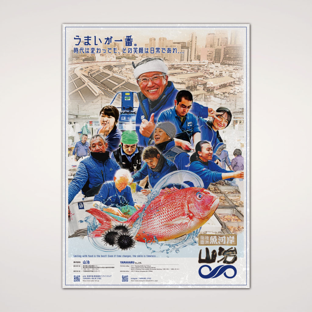Client : 築地豊洲魚河岸 山治 Field : ポスター(A1) 魚のプロ集団、魚河岸山治。国際展示会に合わせPRポスターを制作いたしました。築地時代か…